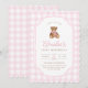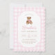 Pink Gingham Teddy Bear Beary First Birthday Invitation