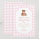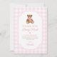 Pink Gingham Teddy Bear Beary First Birthday Thank You Card