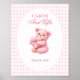 Pink Gingham Teddy Bear Neutral Baby Shower Poster
