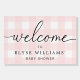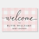 This welcome sign features a timeless gingham design with a modern calligraphy welcome heading. The sign can be customised to suit any event.