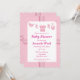 Plain white envelopes are included with paper invitations and will come to fit the invitation size you select. If you don’t need the envelopes, you may choose to not receive them by selecting the dropdown below "Envelopes" and choosing "None." If you’d like to have a design on your envelopes, you can browse all of these available envelopes to find the design that complements your Pink Girl Baby Shower Invitation.