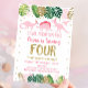 Pink Girl Dinosaur Fourth Birthday Invitation