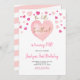 Pink Girl Watercolor First Birthday Heart Invitation