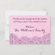 A beautiful, classy design with a cross medallion hanging from a satin pink ribbon. The bottom has beautiful pink hydrangea flowers. The background pink with an elegant damask watermark. The text is a calligraphy style purple font. The back side has pretty hydrangea flowers. Personalize this thank you card for your child's baptism, baby dedication or christening. It also works well for other religious occasions such as First Communion.