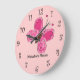 Pink girly wall clocks with pretty butterfly and monogram space you can add a name or initials on the clock face. Decorative wall decor clock design for girls, kids, or college dorm rooms, or a baby girl room. Best clocks for babies, girls, nature lovers or butterfly lovers. Colors include pink, peach, white, and brown.