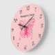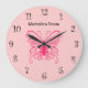 Pink girly wall decor clocks with pretty elegant pink butterfly graphic and monogram space you can add a name or initials on the clock face. Decorative wall decor clock design for girls, kids, or college dorm rooms, or even a baby girl room. Best clocks for babies, girls, nature lovers or butterfly lovers. Colors include pink, peach, white, and brown.