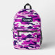 Own your style with our Name Customizable purple camouflage backpack. Bursting with vibrant colors, this backpack is a bold statement in individuality. Personalize it with your name for a unique touch!