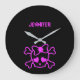 On this item, you see a very cute bright pink girly skull with bow and big 'eyes' in heart shape.