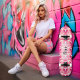 Imprinted with a vibrant pink pattern inspired by retro designs, this skateboard is an instant eye-catcher. The intricate, girly details set against a classic skateboard silhouette create a visually stunning contrast that is both nostalgic and trendy. Perfect for girls who love the thrill of skateboarding and have an appreciation for vintage style.