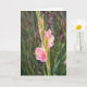 My original digital artwork featuring my original photograph of a pink Gladiolus flower, also called a Glad, is on this pretty floral card. Image was processed with a watercolor fantasy effect for an illustrated and whimsical appearance. This pretty card is blank inside so there is plenty of room to write a letter or personal sweet sentiment. A great card for any flower and nature lover!