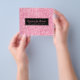 Elegant modern simple geometric design with pink glitter texture print with black squares for customizable text template for beauty and fashion industry.