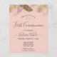 Pink script typography. Faux gold, silver, pink glitter paint splash. First Communion celebration budget invitations. You can add photos to the back or additional text if needed.