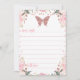 Sweet butterfly themed birthday party time capsule card featuring two lovely watercolor pink floral arrangements and faux pink glitter butterfly.