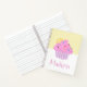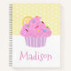 Pink Glitter Cupcake on Yellow White Hearts Name Notebook