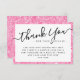 Elegant business thank you note card or insert card with pink printed glitter look border and custom logo on the back. You can change fonts and font colors with the design tool