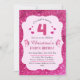Pink glitter cute vibrant sparkling 4th birthday invitation