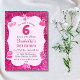 Pink glitter cute vibrant sparkling 6th birthday invitation