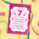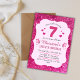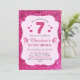 Pink glitter cute vibrant sparkling 7th birthday invitation