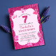 Pink glitter cute vibrant sparkling 7th birthday invitation