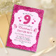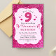 Pink glitter cute vibrant sparkling 9th birthday invitation