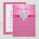 Pink Glitter Diamond Heart Baby Shower Invitation