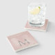 Pretty girly pink glitter drips, elegant script name, and gray monogram on a blush pink background coaster. Designed by Thisisnotme©