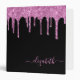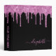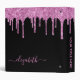 Pink Glitter Drips Personalized Black 3 Ring Binder