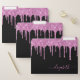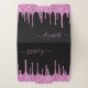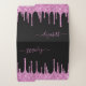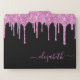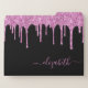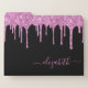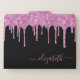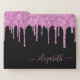 Personalized chic file folders with sparkly pink faux glitter dripping from the top against a black background. Add your initial and name in a trendy script with swashes.
