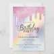 Pink Glitter Drips Rainbow Holographic Birthday Invitation