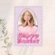 This custom greeting card features a cute and glamorous Easter theme. A pink glitter and foil design egg frame is placed in the center with a sample photo that you can personalize to include your own custom photo or image. A "Happy Easter" greeting is printed below in a hot pink bubbly font.