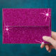 A glamorous birthday party envelopethat features a fun glitter effect for the inner diva in you! This envelope is hot pink and shiny.
