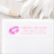 Pink glitter lips kiss with dots pattern on white background. Customizable text template return address label. Modern design.
