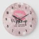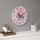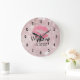 Pink Glitter Lips & Rose Gold Tropical Leaves Large Clock