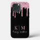 Pink Glitter Monogram Initials on Black Case-Mate iPhone Case