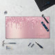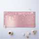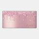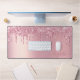 Modern monogrammed desk mat that features pink faux glitter drips on a pink faux foil background. Personalize with your name in an elegant pink script with swashes.