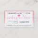 Elegant chic pink glitter sparkles white marble script makeup hair pink heart loyalty card with modern hand lettering style brush typography on white , a simple, professional and minimalist card. offer 10 treatments and discount to your customers.
