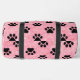 This sparkling Gear bag features a delightful pattern of black paw prints set against a shimmering pink background with small white glitter details. It's a charming Kit bag and a fashionable Weekender for pet owners with flair.