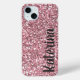 Pink Glitter Personalized with Your Name. Girly, Pretty Mobile Phone iPhone 15 plus Case.