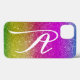 Bright magenta glitter rainbow iPhone case with optional monogram. Protective raised edges guard your screen. Fits iPhone [XX/XX/XX models]. Perfect for gifts or personal flair. Coordinates with our glitter tech accessories!