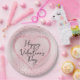 Pink Glitter Romantic Script Valentine's Day Paper Plates
