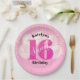 Pink Glitter Sweet 16 Birthday Balloons Script Paper Plates