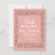 Elegant, modern, and trendy pink glitter 70th birthday party invitation for women. These stylish cards have an elegant script font and a sparkly pink glitter frame. Text, font, and background color are completely customizable with Zazzle's design tool so if you want to change your font and background color, or design this card for someone who isn't 70 years old, go for it. Contact us for help with customization or to request matching products.