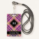 Pink, golden yellow and blue tartan design. Seamless pattern. Custom text and monogram.