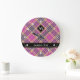 Pink, golden yellow and blue tartan design. Seamless pattern. Custom text and monogram.