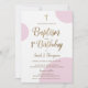 Pink Gold Baby Girl Baptism 1st Birthday Invitation