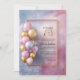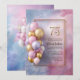 Invite your friends and loved ones to your 75th birthday celebration with this modern invitation that features a stylish gold frame and pink, gold and lavender balloons. The customizable text area in this invitation template allows you to include all the necessary details for your special birthday celebration, including the date, time, venue, and RSVP information. A variety of paper types and corner styles are available for your unique invitations, along with the option to download if you prefer a digital format.