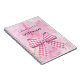 A girly notebook for school, journaling or diary. Pink fluids with golden splashes as background, decorated with a large checked bow. Personalize and add a name.