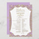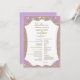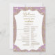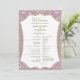 This wedding program card radiates soft elegance with a delicate light pink background enhanced by intricate golden damask details. The front side displays the full wedding program framed with elegant golden flourishes, while the back highlights the couple’s names inside a circular golden damask motif. The light pink and gold combination creates a graceful and romantic look, perfect for timeless and formal wedding celebrations.