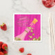 Feminine pink and gold birthday party celebration paper napkins- Luxury look, faux silk, hot pink background. Faux shiny glitter ribbon in the upper left corner frames personalized name, event title, and date or any custom text you wish in black. Currently reads '40th birthday'. Pink and faux foil gold champagne bottle popping its cork with overflowing, gold foil effect champagne bubbles finish the chic look. Elegant woman's birthday paper napkins. They would also be cute for girl baby showers, bachelorette party, or any chic celebration event. Coordinating champagne Save the Date and other sophisticated birthday party supplies are in our Zazzle.com/angela65* store.