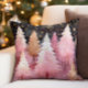 Pink Gold Christmas Trees Snowflakes Night Sky Throw Pillow